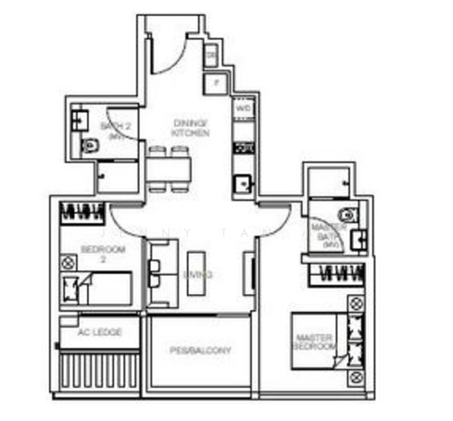 - 2 Bedrooms with 1 bedrooms