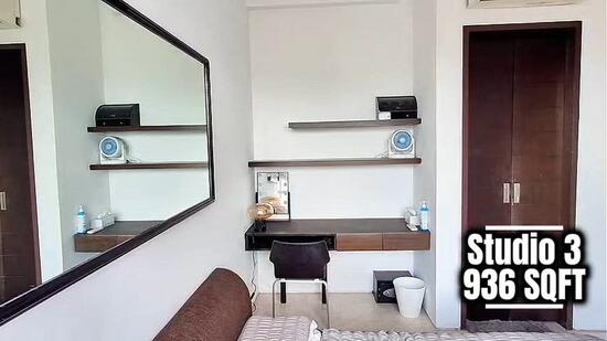 This stunning 936 sq ft high-floor studio unit wprivate roof terrace and jacuzzi is priced at $6,500. It has an efficient and spacious layout, and it offers a perfect blend of accessibility and comfort, for single or couple stay.