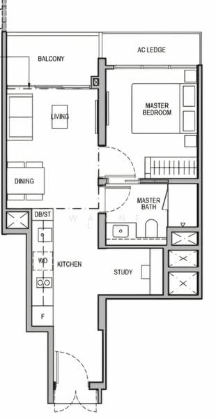 Layout: 1 Bedroom + Study