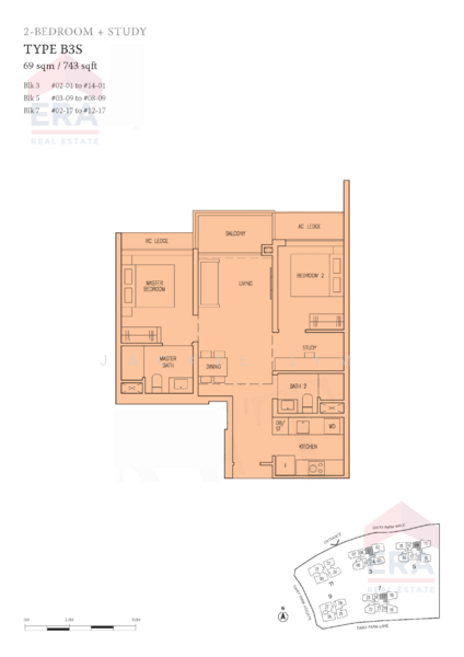 Floor size of this unit at The Botany at Dairy Farm is 743 sqft.