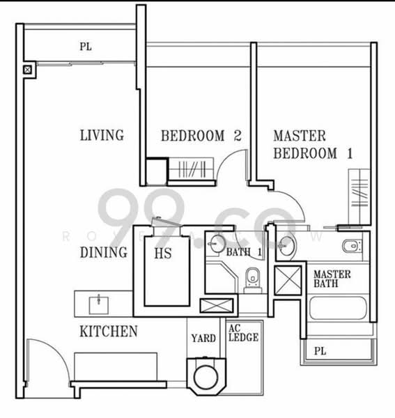 Estimated unit size : 883 sqft