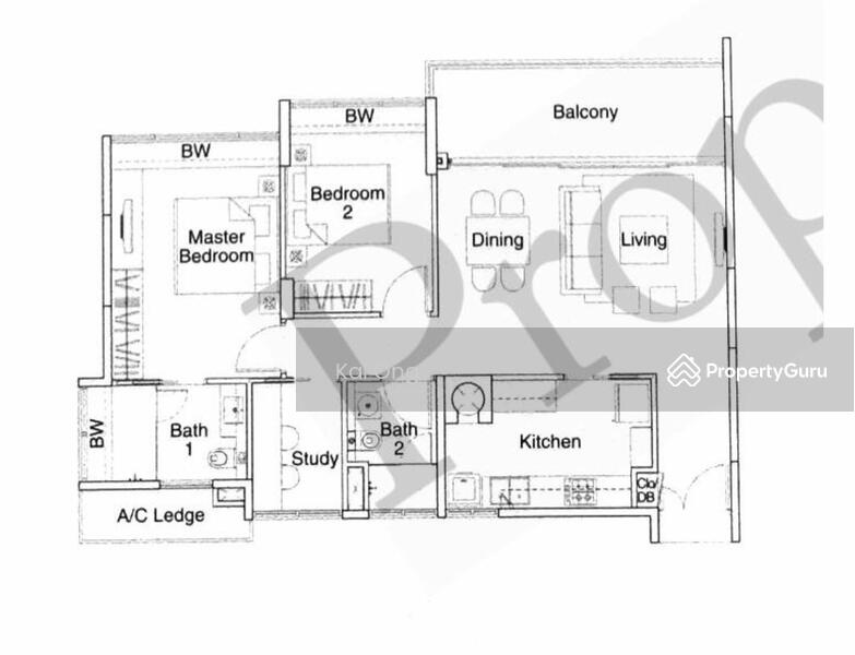Spacious 2+Study with nice long balcony!