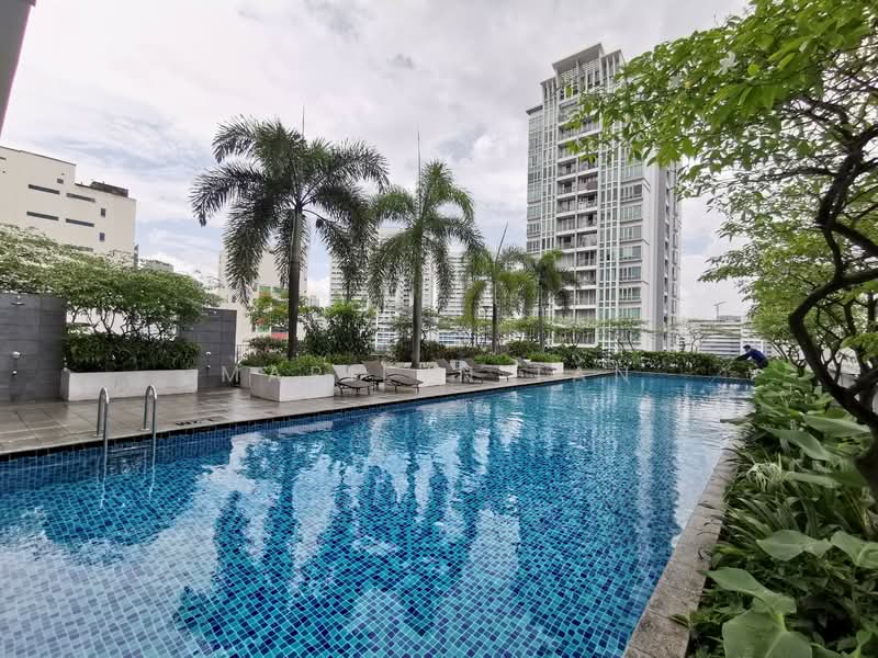 Floor/View: High floor with a 270-degree city skyline view, overlooking the swimming pool and lawn.