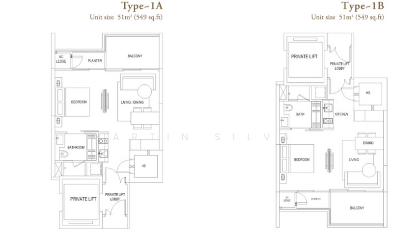 1 Bedroom -45units - 549 / 667 / 721sqft
