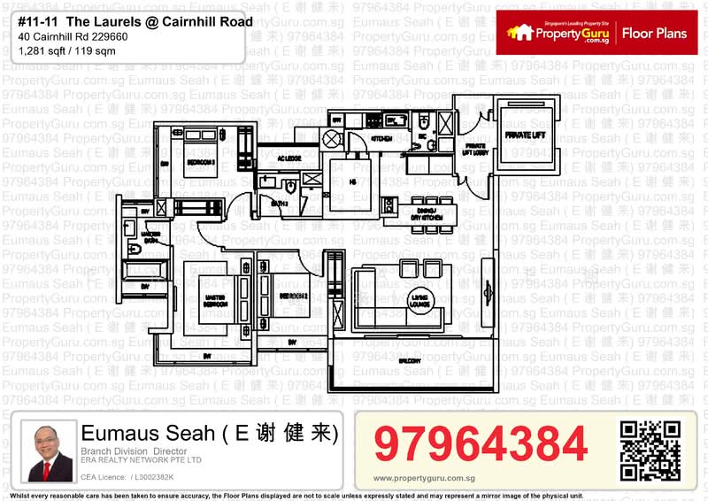 3 bedrooms with private lift