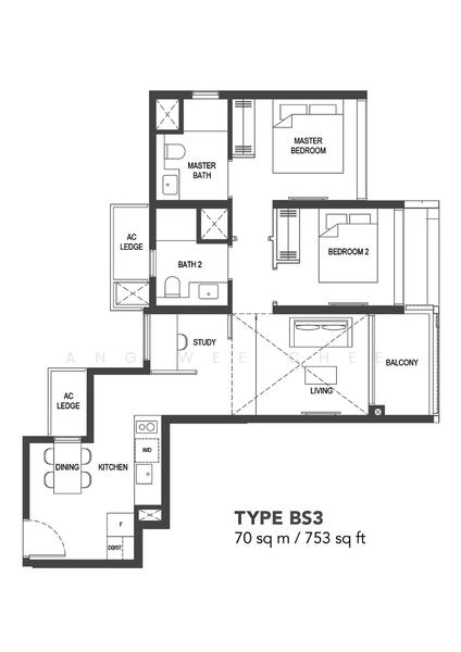 ** 2 Bedroom + Study , 2 Bath
