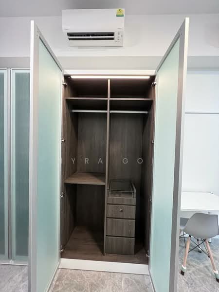 The condominium boasts impressive project amenities such as a refreshing swimming pool, a fully-equipped fitness corner, and 24-hour security for your peace of mind. Inside the unit, enjoy the comfort of air conditioning and ample bedroom cabinets for all your storage needs.