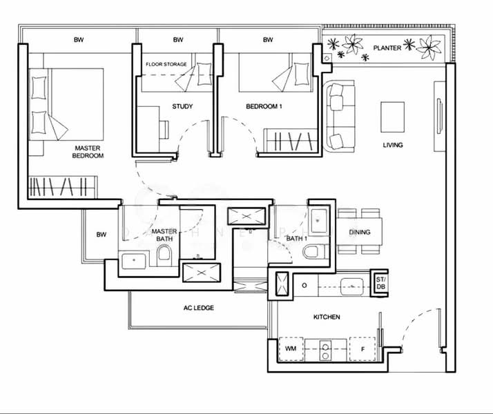 8.Efficient and regular layout with enclosed kitchen, commodious master room, living and dining area.
