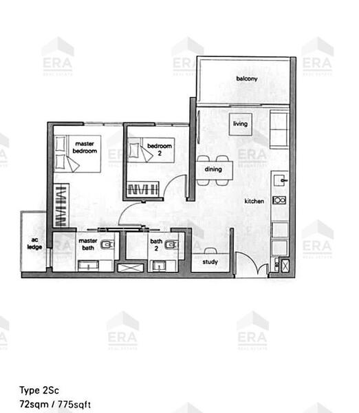 - Study space has been removed and kitchen space has been relocated. This is to create a much spacious living and dining space