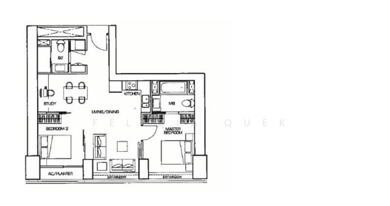 2bed 2 bath + study/ dining area
