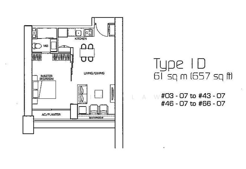 1 bedrooms ~ 55 sqm (592 sqft) to 72 sqm (775 sqft)
