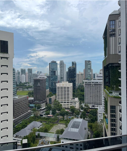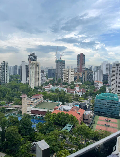 Balcony overlooking Orchard shopping belt yet is quiet. 270 degree unobstructed view around the apartment.