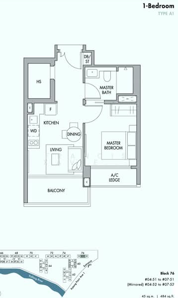 Floor size of this unit at The Tre Ver is 484 sqft.