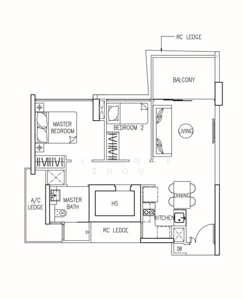 - 2房1卫+储藏室,710平方尺