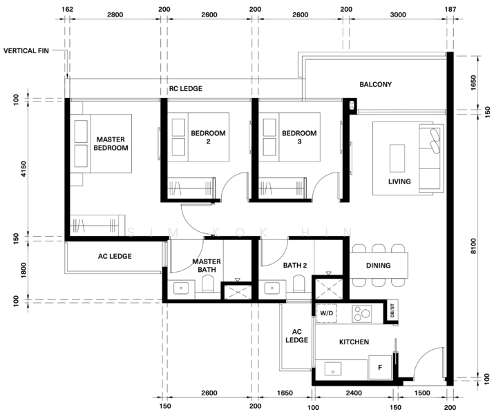 Floor size of this unit at The Watergardens at Canberra is 958 sqft.