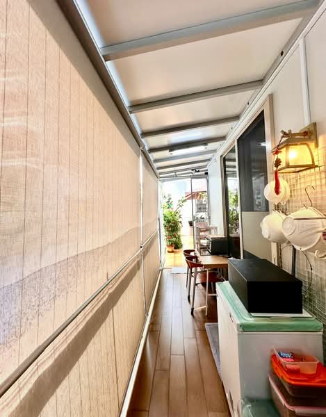 Patio fully done up with partial enclosed shelter.