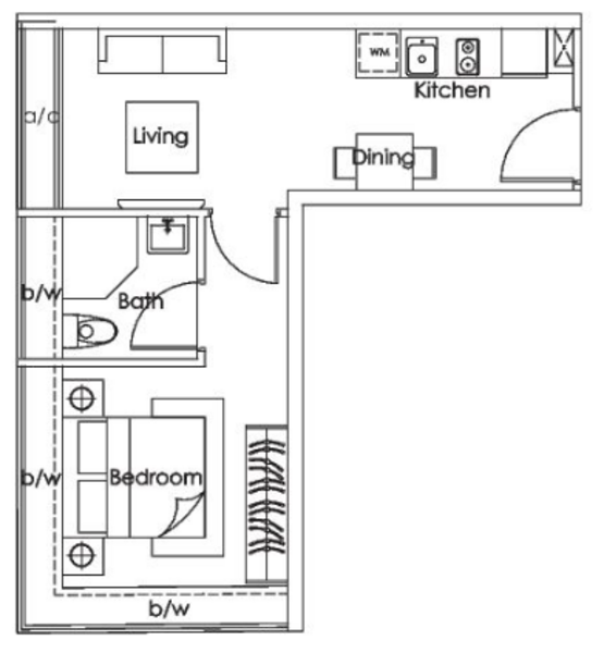 - decent living room size, face omega apartments