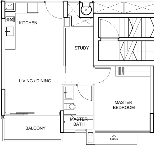 * 1 Bedroom + 1 Study + 1 Bathroom