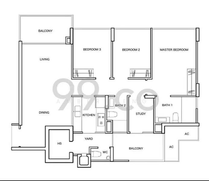 *3 Baths rooms: one is ensuited master bathroom, one is common bathroom, one is at service yard side can be used for helper;