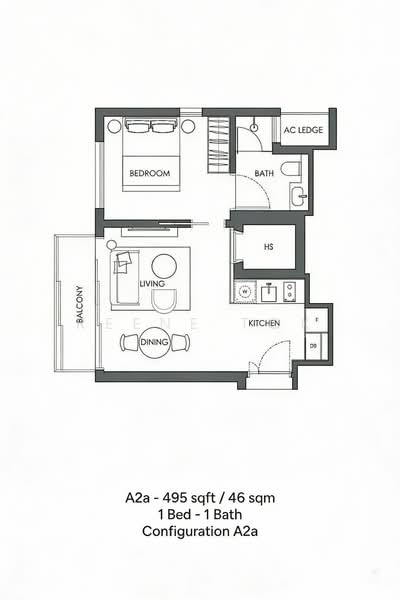 + 1bedroom, 1bath unit at 45.9sqm / 495sqft