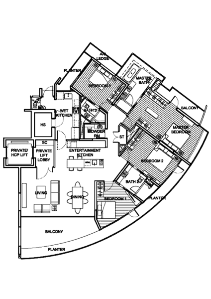 Layout: Functional 2,497 sqft floor plan with a private lift lobby.