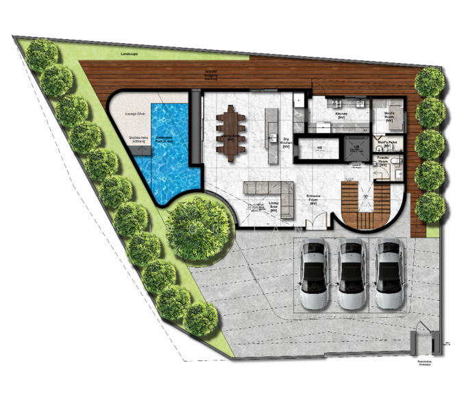 • Private swimming pool with landscaped outdoor area