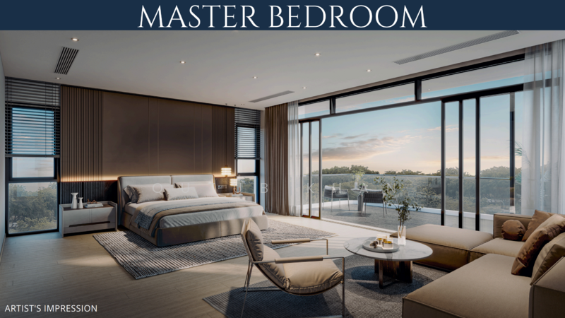 The master suite spans a generous space with its own huge balcony, offering a quiet retreat with pleasant greenery views.