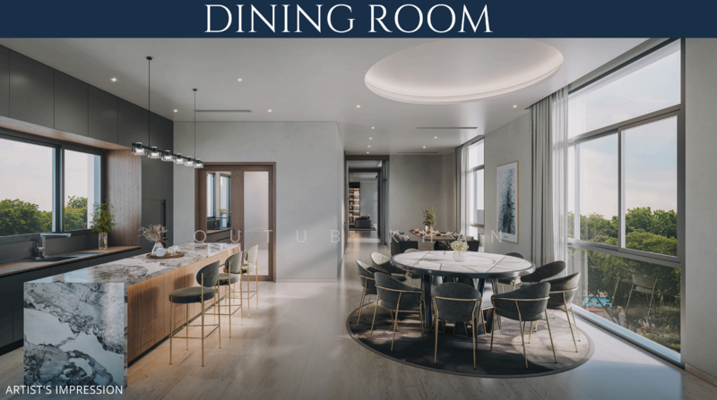 The basement level opens directly to the pool area — perfect for hosting, relaxing, or creating your own private entertainment zone. The main living and dining spaces are expansive, with seamless indoor–outdoor flow and abundant natural light. A stylish dry kitchen with marble island complements a practical wet kitchen tucked away at the back.