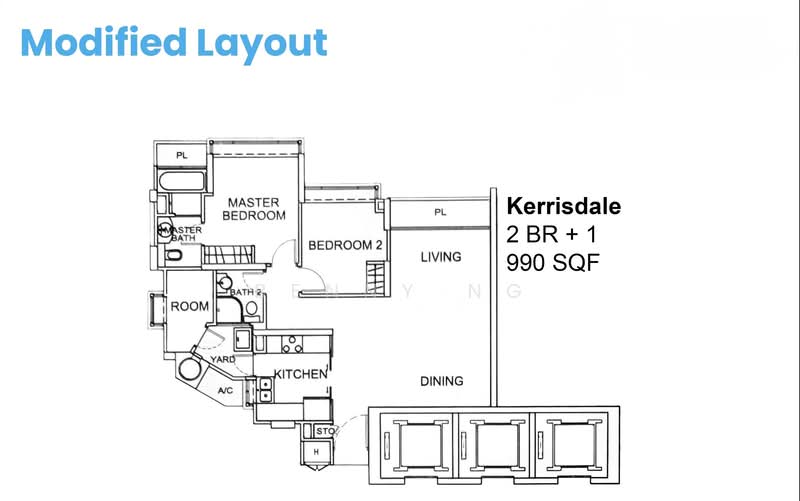 Basically a modified 2 bedroom layout with an extra study/hobby/flexi/maid room that spots a window with a view!