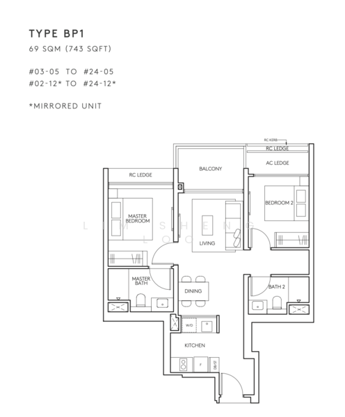 ► 2 Bedroom 2 Bath 743 sqft