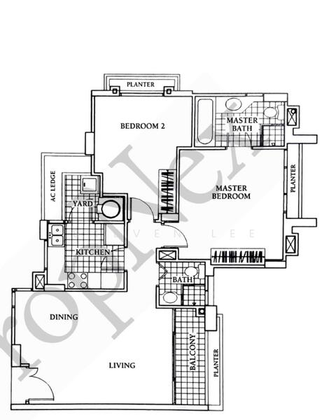 Spacious 2-bedroom unit (893 sqft) located on high floor #14, enjoying an unblocked pool view with a desirable North–South orientation.