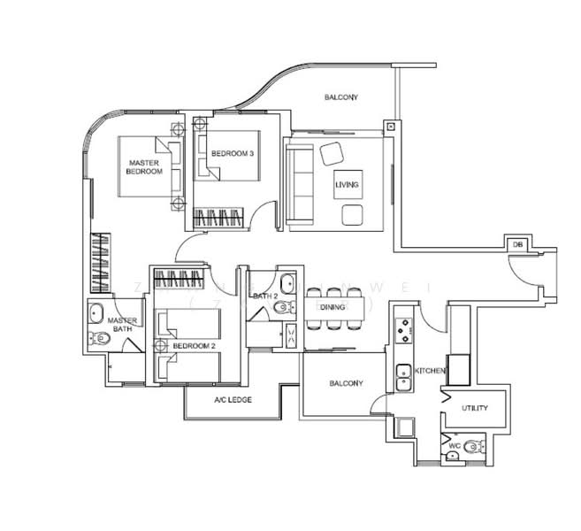 - Verandah style kitchen with direct access to both balcony and living.
