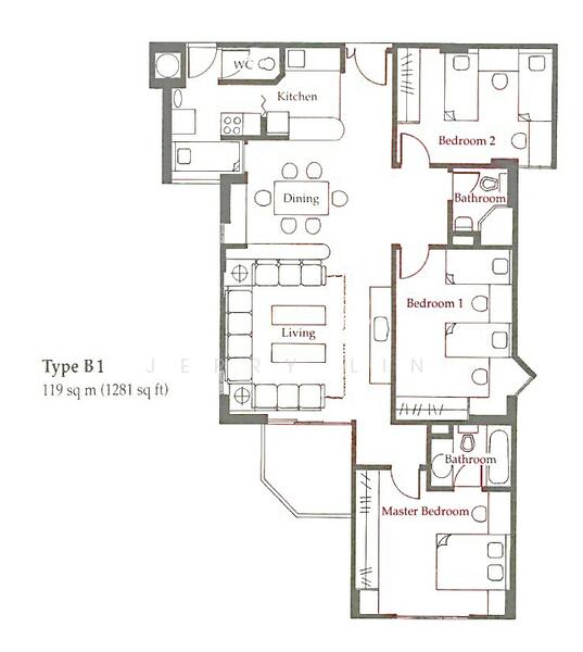 Bedrooms : 3, including 1 Master Ensuite