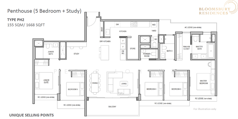 - 5 Bedrooms + Flexi Penthouse (1711sf)