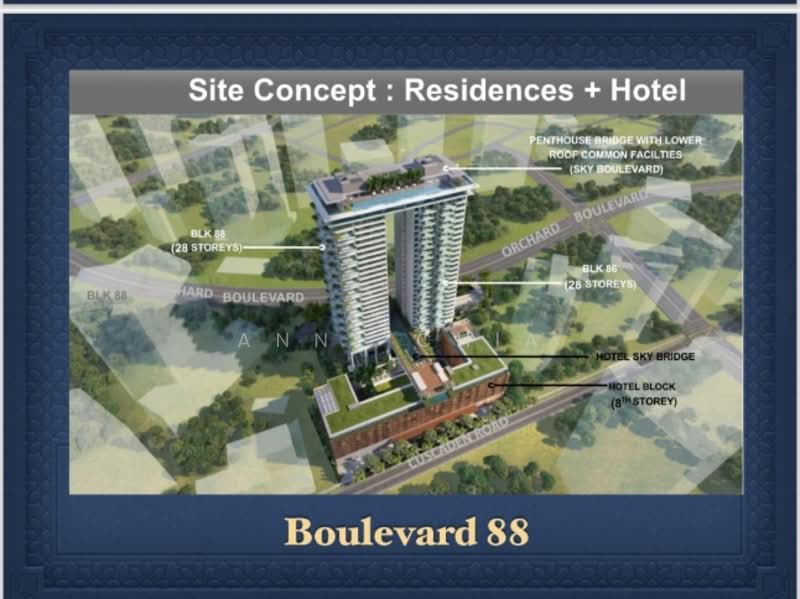 Boulevard 88 is a freehold condominium development that is located at Orchard Boulevard in District 10. It is a condominium project that was completed recently. The project was completed with a total of 154 units available for sale or rent. The condominium development is located close to public transportation that allows residents to move easily from one place to another from the condominium. There are many shops and amenities close to the condominium development which would ease the process for residents and they do not need to go far to find what they need. The project was developed by City Developments Limited, a very large sized real estate company listed on Singapore Exchange and it has undertaken 80 other property projects in Singapore. - Boulevard 88 is a beautiful condominium development that has many charms to it. There are various facilities that residents can enjoy while living in Boulevard 88. Residents of Boulevard 88 would not have to travel far to get their basic necessities as everything is close within their reach. Residents can enjoy easy access to the condominium as there are lift lobbies as well as designated drop off point to avoid traffic in the compounds of the condominium. Residents can enjoy taking evening walks around the condominium development while enjoying the sun set. The condominium comes equipped with car parks and 24 hours security system that ensures the safety of residents is well taken care of. There is a number of public transportation close to Boulevard 88 that residents can make use of. The closest MRT station is Orchard MRT. The closest bus stops are located at The Regent Singapore, Delfi Orchard, Grange Residences, Orchard Boulevard, Cliveden at Grange and Royal Plaza on Scotts. For those with vehicles, the shopping district located at Orchard Road can be easily accessed via Orchard Road and Grange Road in 5 to 10 minutes. Etonhouse International Pre School ClaymoreIss International SchoolKindernomics School Private LimitedRaffles Girls' SchoolThe Excelerate Program Hard rock CaféMuddy Murphy’s Irish PubThe Rice TableLes AmisWild Honey Bites & BracesChow Surgery Pte LtdDr Basanti Sankaran & AssociatesDr Chia Boon Hock ClinicThe Sen Clinic Cold Storage Orchard HotelTanglin Market PlaveValu Dollar Fire SaleKate’s MartCold Storage Takashimaya Boulevard 88 is a condominium development that is made up of a total of 154 units of 28-storey condominiums. There are 4 types of units available with various layouts that residents can browse through. The size of the units ranges between 1,313 square feet to 6,049 square feet. The layouts for the units in Boulevard 88 aim to provide residents with homes that is comfortable for working adults, couples or families looking to own a spacious and manageable condominium unit. The sale price for the units can go up to S$ 35,000,000. Project Name: Boulevard 88Type: CondominiumDistrict: 10Configuration: 154 residential units Unit Types:2 bedrooms (1,313 sqft)3 bedrooms (1,776 sqft)4 bedrooms (2,766 sqft – 2,799 sqft)5 bedrooms (5,673 sqft – 6,049 sqft) The following developments were developed by the same developer as Boulevard 88:The TapestryNew FuturaOne Shenton The following developments are in the same neighborhood as Boulevard 88:Boulevard 88d'Leedon (Former Farrer Court)Nouvel 18Royalgreen3 Orchard By-The-ParkFourth Avenue Residences