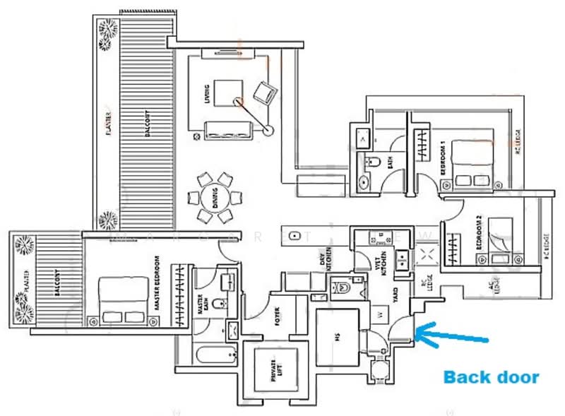 - Good size balcony in living room and master bedroom.