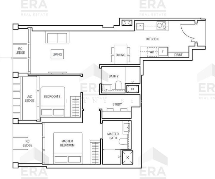 Virtual tour is reflecting 861sqft, 2 bed + study thus for reference only!