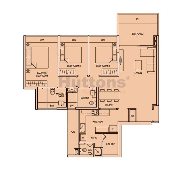 1238sqft, spacious squarish layout, breezy, come with utility room. Resort feel environment,
