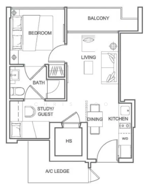 1 Bedroom + 1 Study/Guest Room + Sture Room