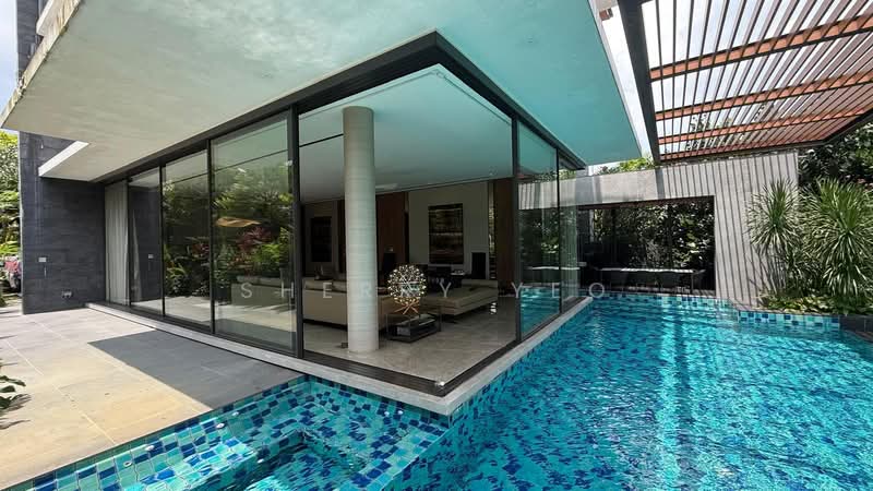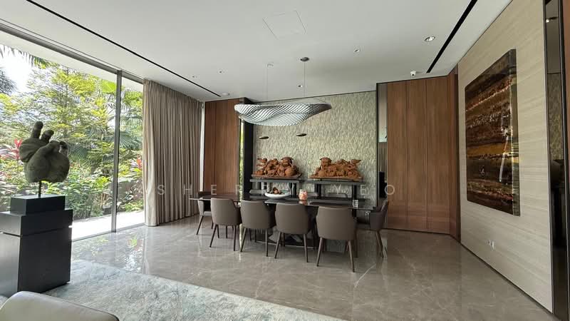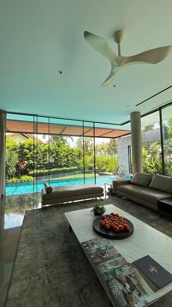 Set on an elevated plot, the property enjoys unblocked greenery views, excellent privacy, and a tranquil, resort-style living environment. The home features spacious living and dining areas, a gourmet kitchen, and seamless indoor-outdoor flow leading to an infinity pool and alfresco dining deck.