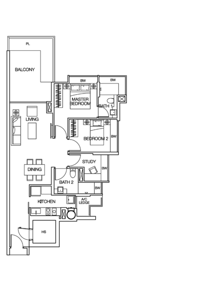 Spanning 1076 sqft, this modern unit at 101, Mergui Road, Singapore, features a stylish modern enclosed kitchen, spacious balcony with 2 Bedroom Plus Study Room with a city view, and well-designed cabinets for ample storage. Selling with Tenancy rented till November 2026.