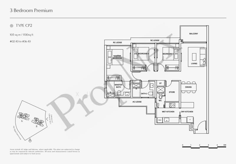 • Size: 1,130 sqft (3 Bedroom Premium)