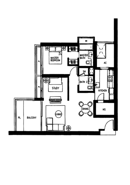+Balcony provides bright natural light and excellent ventilation to the whole unit