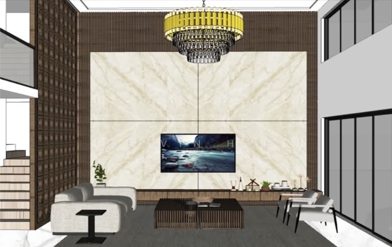 Double volumn high ceiling at the living area