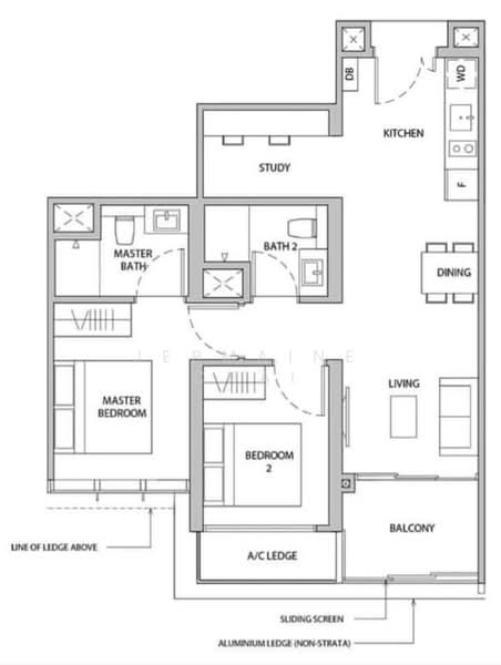 - 2 Bedroom + Study (which can be converted into a bedroom + 2 Bathroom