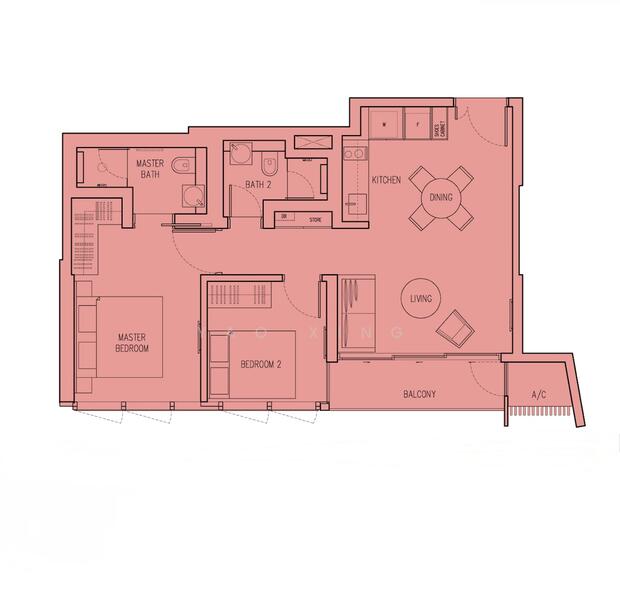 • Layout: 2 Bedrooms + 2 Bathrooms