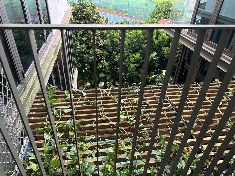 Study room overlooking balcony with garden