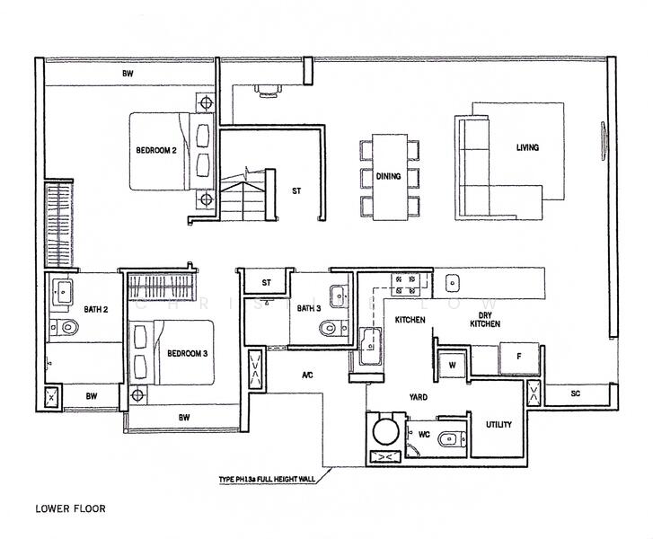 * Lower level: living, dining, study corner, 1 master ensuite, 1 common room, store area, helper's room, kitchen, internal stairs to upper level.