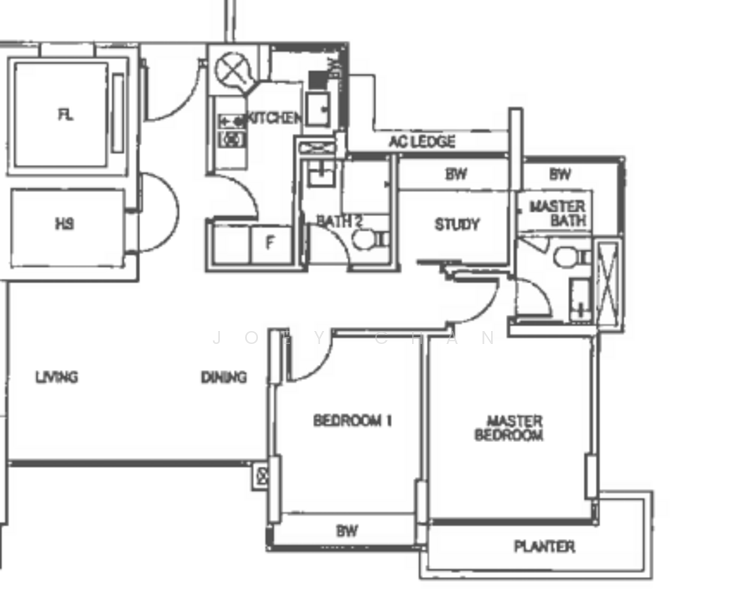 ~ 2 bedrooms + Study + Bombshelter + close kitchen+ balcony/planter