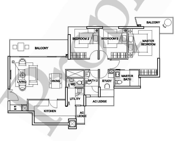 3 bed, 1 study, plus maid room with 3 bathrooms